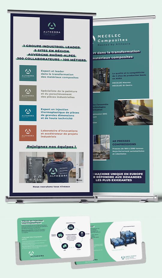 En complément de notre accompagnement global sur l’identité de marque, nous intervenons régulièrement aux côtés d’ALTHEORA pour valoriser sa présence lors de ses temps forts professionnels.